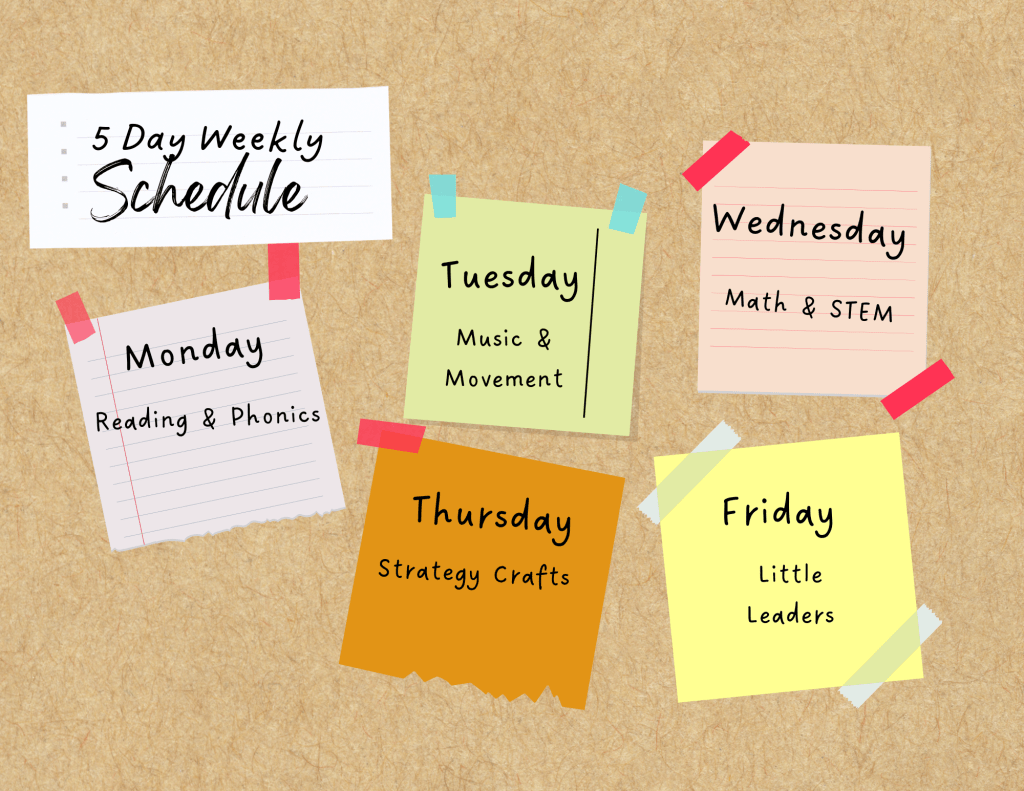 Focuses on emerging skills in the areas of literacy, math, social emotional learning, and physical development.